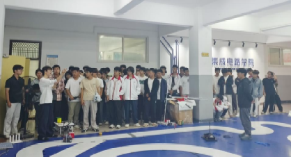 在学院老师的带领下,新生们有序参观了电工电路实验室、电子技术实验室以及逐鹿智能车队等。实验室负责人耿世勇老师细致讲解了仪器设备的用途与研究方向,学科竞赛的发展历程和取得的成果。逐鹿智能车队的学长学姐们给学生们进行了生动的演示并介绍了一些需要具备的基本技能。同学们驻足观看,踊跃提问,对即将接触到的实验课程和科研平台表现出浓厚的兴趣。这次参观在他们心中播下了探索与创新的种子。